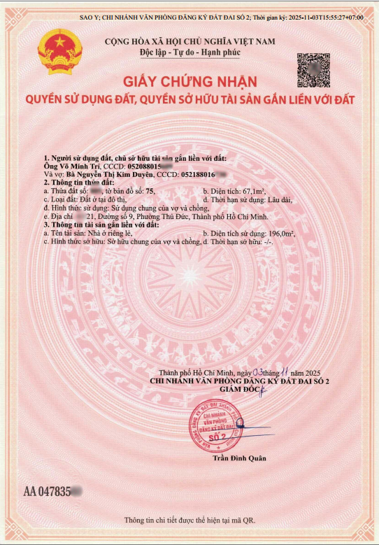 Trong những ngày gần đây, Công ty Đo đạc Phát Thịnh đã tiến hành bàn giao Sổ hồng đã hoàn công cho khách hàng tại phường Trường Thọ (quận Thủ Đức cũ, nay là phường Thủ Đức, TP.HCM).