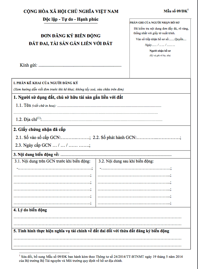 - Đơn đăng ký biến động đất đai ( mẫu 09/ĐK)