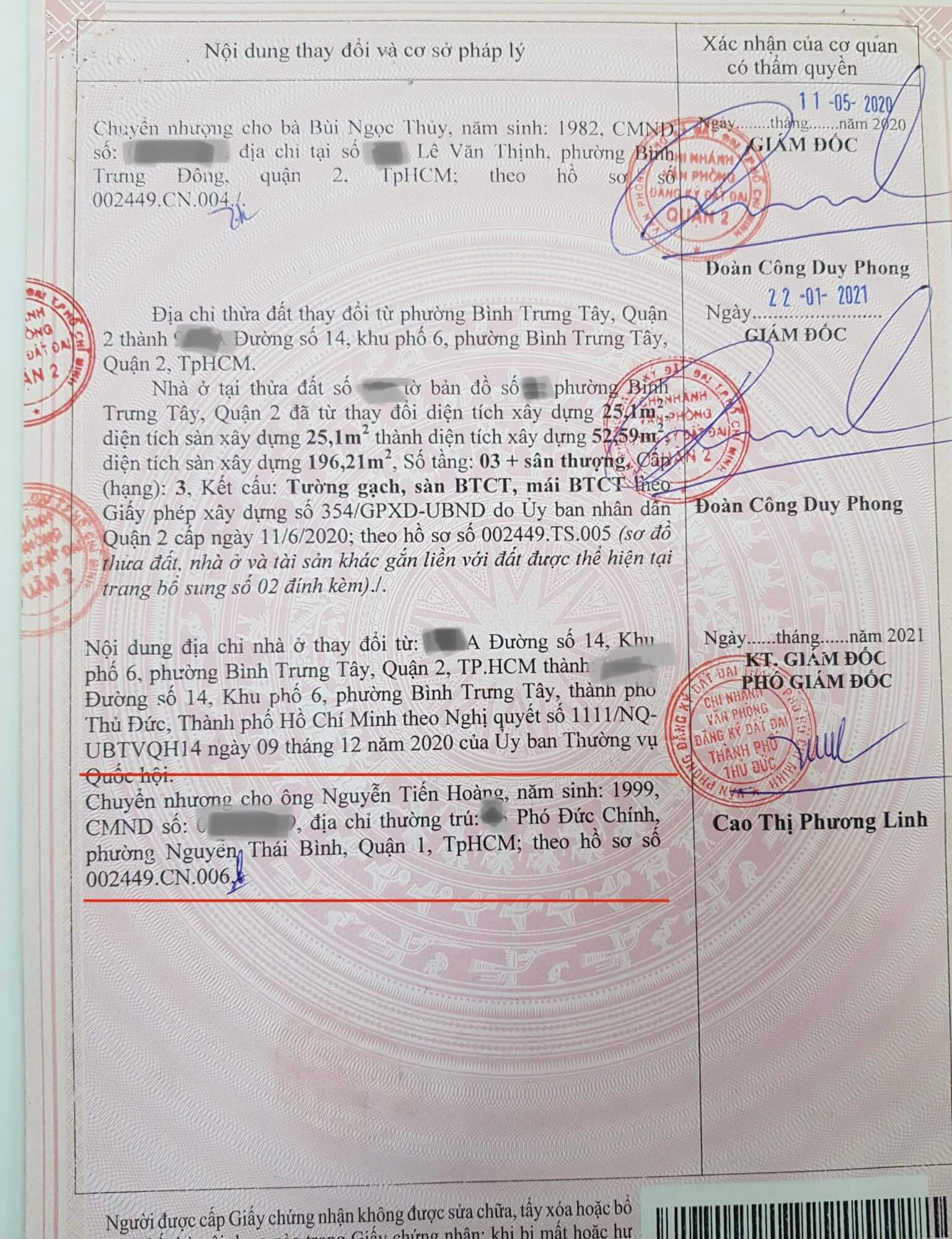Bước 10: Chi nhánh Văn phòng đăng ký đất đai tiến hành ký nội dung chuyển nhượng sang tên lên trên Giấy chứng nhận (sổ đỏ , sổ hồng)