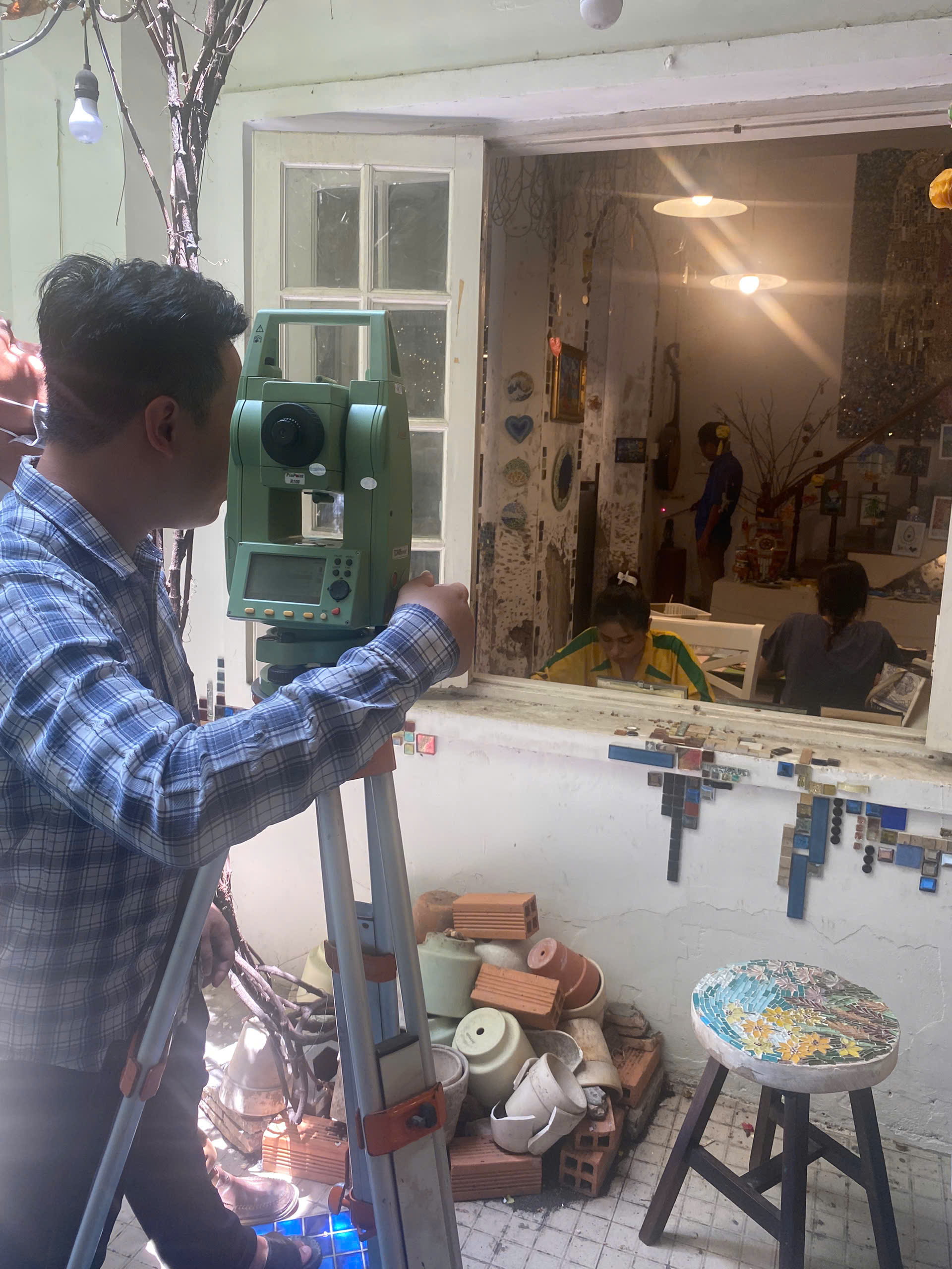 - Dụng cụ: Máy toàn đạc