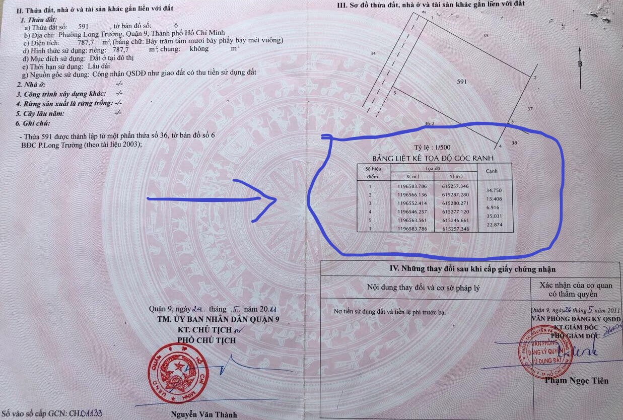 sổ đỏ có tọa độ góc ranh