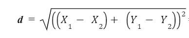 D = √[(X₂ – X₁)² + (Y₂ – Y₁)²]