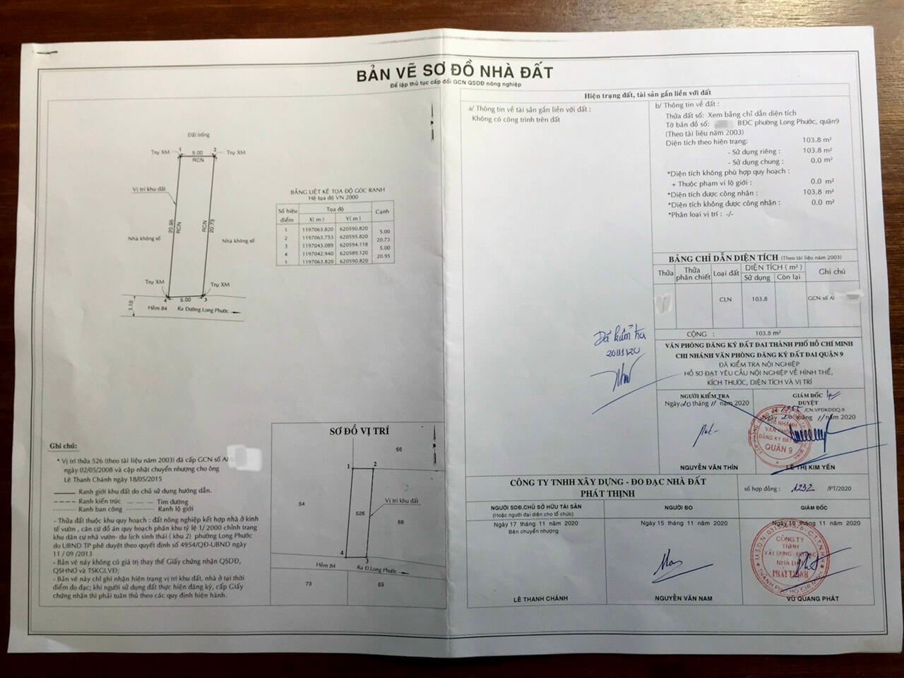 -Bản vẽ được duyệt nội nghiệp đầy đủ bởi cơ quan có thẩm quyền( Chi nhánh văn phòng Đăng ký đất đai quận huyện nơi có đất).